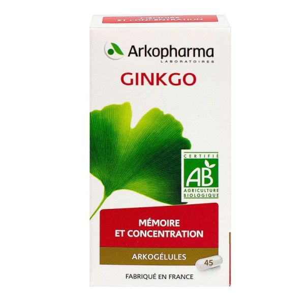 Poudre de feuille de Ginkgo (Ginkgo biloba) : 250 mg/gélule (soit 72%). Enveloppe d'origine végétale : hydroxypropylméthylcellulose.