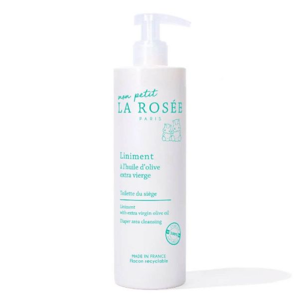 Le liniment La Rosée est 100% d’origine naturelle. Il est composé de seulement 5 ingrédients : de l’eau, de l’huile d’olive pressurisée à froid, pour nettoyer, nourrir et protéger, un émulsifiant d’origine naturelle, de l’eau de chaux, pour protéger de l’acidité des selles et des urines et de la cire d’abeille, pour assouplir et nourrir la peau. Il nettoie parfaitement les fesses de bébé tout en déposant un film lipidique protecteur, qui prévient les rougeurs et les érythèmes fessiers !